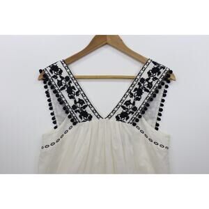 J CREW 100% COTTON TANK TOP FLORAL BLACK EMBROIDERED POM POM BABYDOLL Size 4