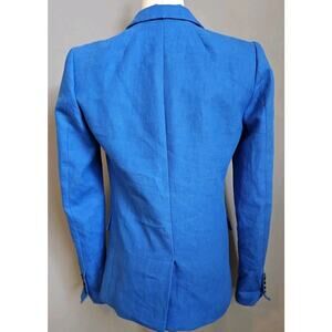 J CREW 100% Linen Blazer SIZE 0 Royal Cobalt Blue One Button Office Career Work