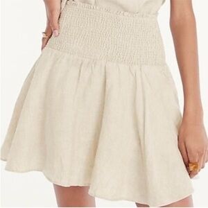 J. Crew Oatmeal 100% Linen Lined Mini Skirt Wide Elastic Smocked Waist Beachy Coastal