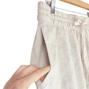 J. CREW 100% Linen Seaside Wide-Leg Cropped Pant in Oatmeal Beige Size M