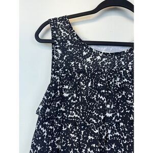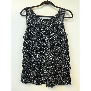 J. CREW 100% Silk Black/White Abstract Floral Sleeveless Ruffle Blouse, Sz 2