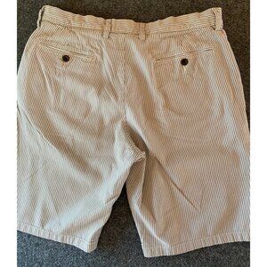 J. CREW 10.5" Club Shorts Men 34W Striped Grey/White Flat Front Casual Chino