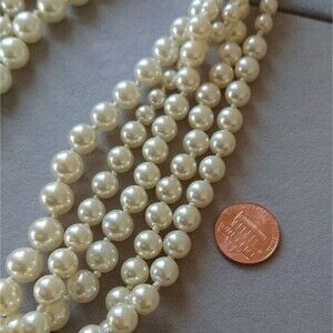 Gorgeous details in this 5 chain strand of mixed ivory, cream, off white toned, reflective faux pearls.