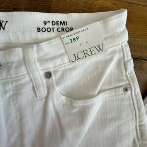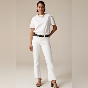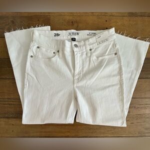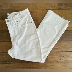 J CREW 9” White Demi boot cut Jeans cropped rawhem Mid-rise 28p slim flared leg