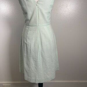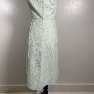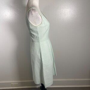 J. CREW A Line Dress Sz 0 Green White Seersucker Pleated Sleeveless Back Zip