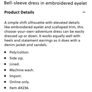 TYPE: BELL SLEEVE DRESS IN EMBROIDERED EYELET