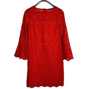 J. CREW AK236 BELL SLEEVE EMBROIDERED EYELET SCALLOP HEM SHIFT DRESS
