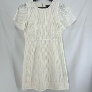 J. CREW A-Line Dress Eyelet Keyhole Back Size 6P White Easter Spring Bohochic