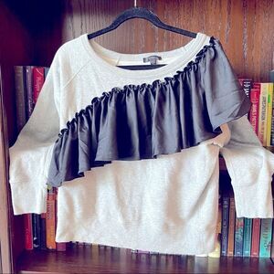 J. CREW • Asymmetrical Ruffle Sweatshirt PULLOVER SWEATER MEDIUM Gray Black