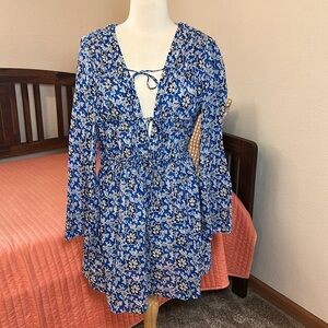 Beautiful and flowy perfect for summer and beachwear! J CREW BEACH DRESS TIERED TIE FRONT FLORAL BLUE WHITE NWT SZ MEDIUM