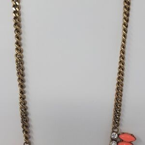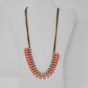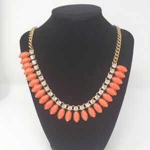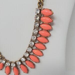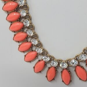 J. CREW BRIGHT CORAL TEARDROP CLEAR RHINESTONE STATEMENT NECKLACE WOMEN JEWELRY
