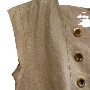 J. CREW Beign 100% Linen Metallic Gold Grommets Tunic Shift Dress Sz 2