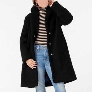 J CREW Black Fleece Teddy Sherpa Topcoat Jacket Coat