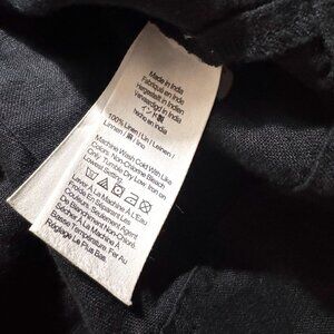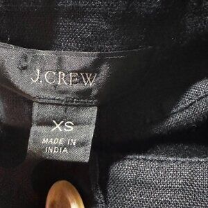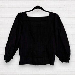 J CREW Black Linen Square Neck Crop Button Front Up Puffy Sleeve Top Blouse XS