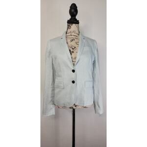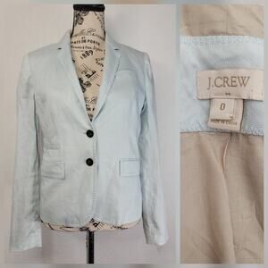 J CREW Blazer Womens SZ 0 Linen Schoolboy Jacket Academia 90s Blue 37358
