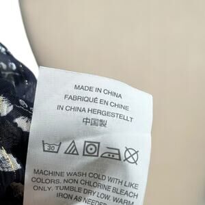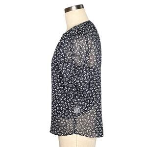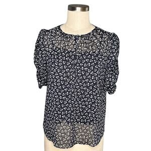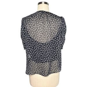 Navy blue white floral sheer short puff sleeve blouse from J. Crew in women's size small.