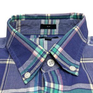 J CREW Blue Summer Plaid Button Collar Long Sleeve Slim Fit Shirt
