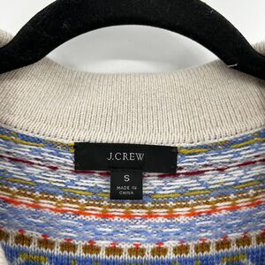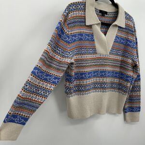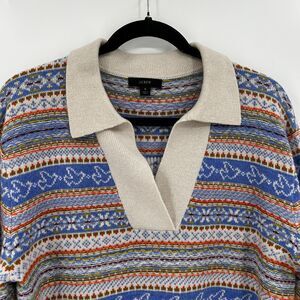 J. CREW Blue White Fair Isle Knit V-Neck Collared Lambswool Sweater Top Small