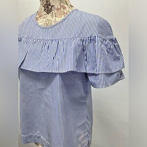 Blue and white micro stripe ruffle top blouse from J CREW, size 8.