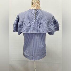 J CREW Blue and white micro stripe ruffle top blouse size 8.