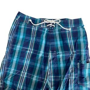 J. CREW Board Shorts Size 33 Mens Swimwear Blue Plaid Swim Trunks