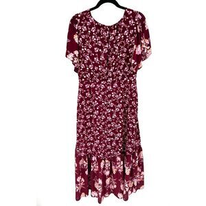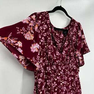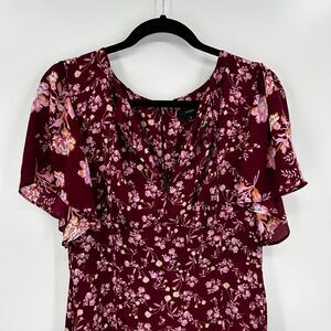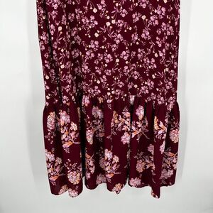 J. CREW Burgundy Pink Floral Flutter Sleeve Tiered Cottagecore Boho Maxi Dress 8