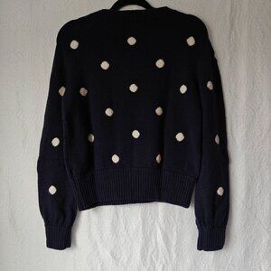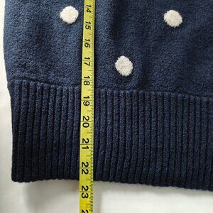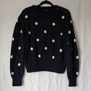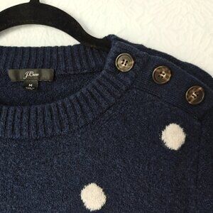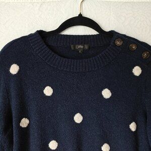 J. CREW Button Merino Blend Polka Dot Crewneck Sweater Navy Women's Size Medium