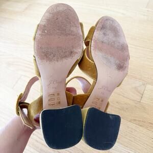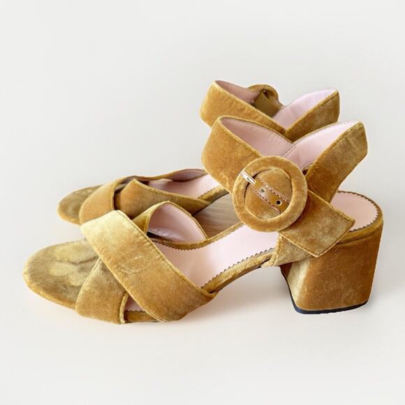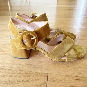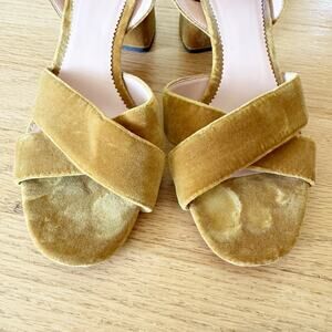 J CREW CLEARANCE VELVET PENNY SANDALS Size 7.5 Yellow Gold Cross Strap