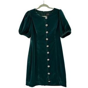 J. CREW COLLECTION $189 OLD FOREST GREEN VELVET JEWELED BUTTON FRONT Dress 4