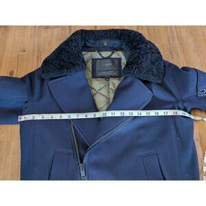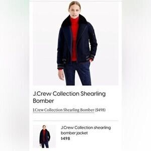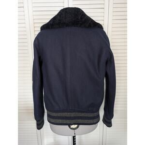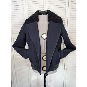 J. CREW COLLECTION Shearling Melton Italian Wool Navy Blue Bomber Jacket…