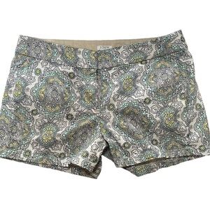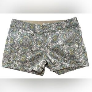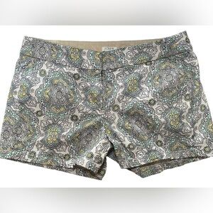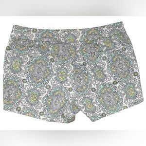 J CREW COTTON SHORTS WHITE AQUA YELLOW BLACK OUTLINE ABSTRACT