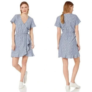 J CREW | Chambray Floral Print Faux-Wrap Ruffle 100% Cotton Dress Size XS
