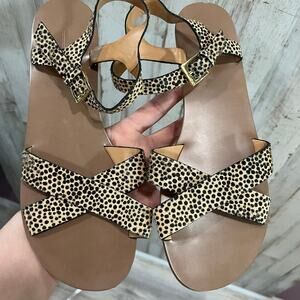 J CREW Cheetah Print CALF FUR Cross Strap FLAT Summer Leather SANDALS 8