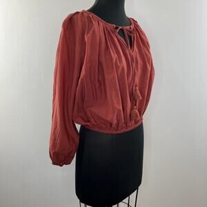 J. CREW Chimney Brown Cotton Blend Puff Sleeve Tassel Tie-Front Crop Top Size S