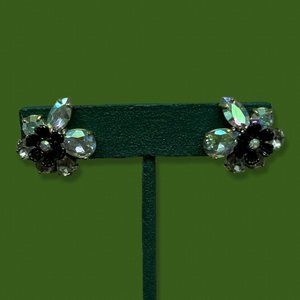 J. CREW Clear Iridescent Rhinestone Crystal FLOWER Stud Earrings