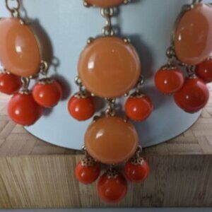 J CREW Coral Orange Acrylic Flat Bead Bibbed Statement Necklace Great condition
