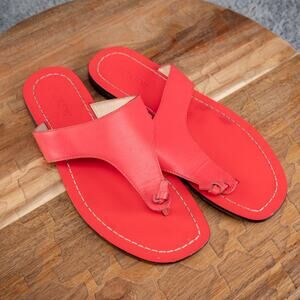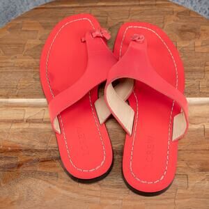 J. CREW Coral Pink Playa Leather T-Strap Sandals Womens Size 6