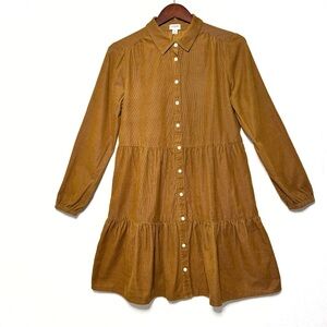 J. CREW Corduroy Collared Button Down long sleeve Shirt mini Dress Brown Size 6
