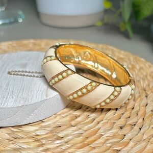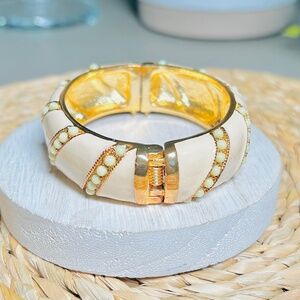 J. CREW Cream Enameled & Faux Pearl Spring Clamped Bangle Bracelet
