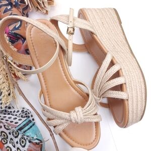 J. CREW Cream Espadrille Platform Wedge Sandal Size 9½