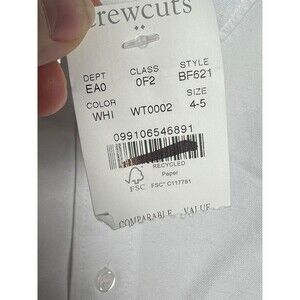J. CREW Crewcuts Boys' Oxford Shirt Size 4-5 White NWT Short Sleeve School