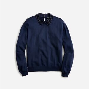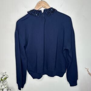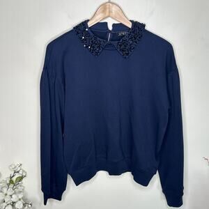 J. CREW Crewneck Sweatshirt Crystal Peter Pan Collar Navy Blue Sz M {A29}