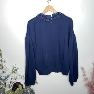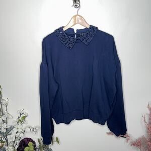 J. CREW Crewneck Sweatshirt Crystal Peter Pan Collar Navy Blue Sz XL {L11}