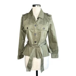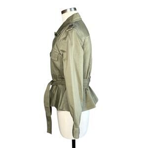 J CREW Cropped Fatigue Jacket Belted Peplum Army Green Women's Size Small