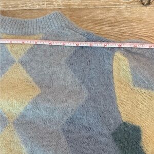 J. CREW Diamond Checked Argyle Cropped Crewneck Sweater Blue Cream Size Small