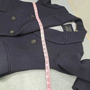 J CREW Double Cloth Manifattura di Carmignano Italy Peacoat Size 8 Navy Blue Double Breast Wool Blend Thick Classic Staple