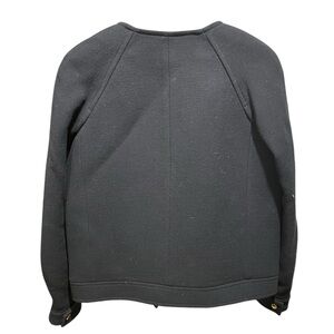 J CREW ~ Double Cloth Navy Blue Wool Moto Style Jacket Made in Italy. Wool Nylon Blend. Size 6. In good preowned condition.