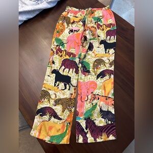 pajama-inspired pants feature a super fun print from Italy's Ratti print house (home to some of the world's most amazing motifs since 1945). We love to pair the wide-leg silhouette with a more fitted shirt for a sleek look.