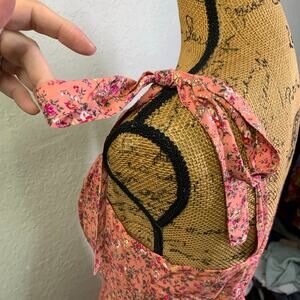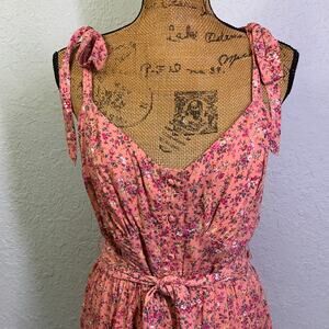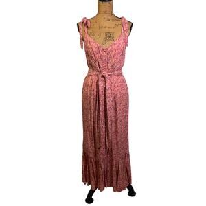 J. CREW Dress 10 Pink Micro Floral Tie Shoulder & Waist Belt Tiered Slit Skirt