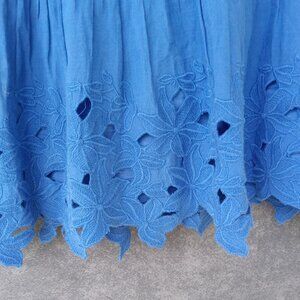 J. CREW Cobalt Blue Pleated embroidered eyelet floral lace pintuck trim cotton skirt